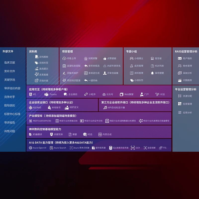医疗器械产品上市前,,,要熟悉严格与繁复评审标准,,整理分析监管机构指导文件中的海量信息。。。企业急需一个智能化解决方案,,,,提升知识管理效率,,,,提高评审通过率,,,以提升其市场竞争力。。。。